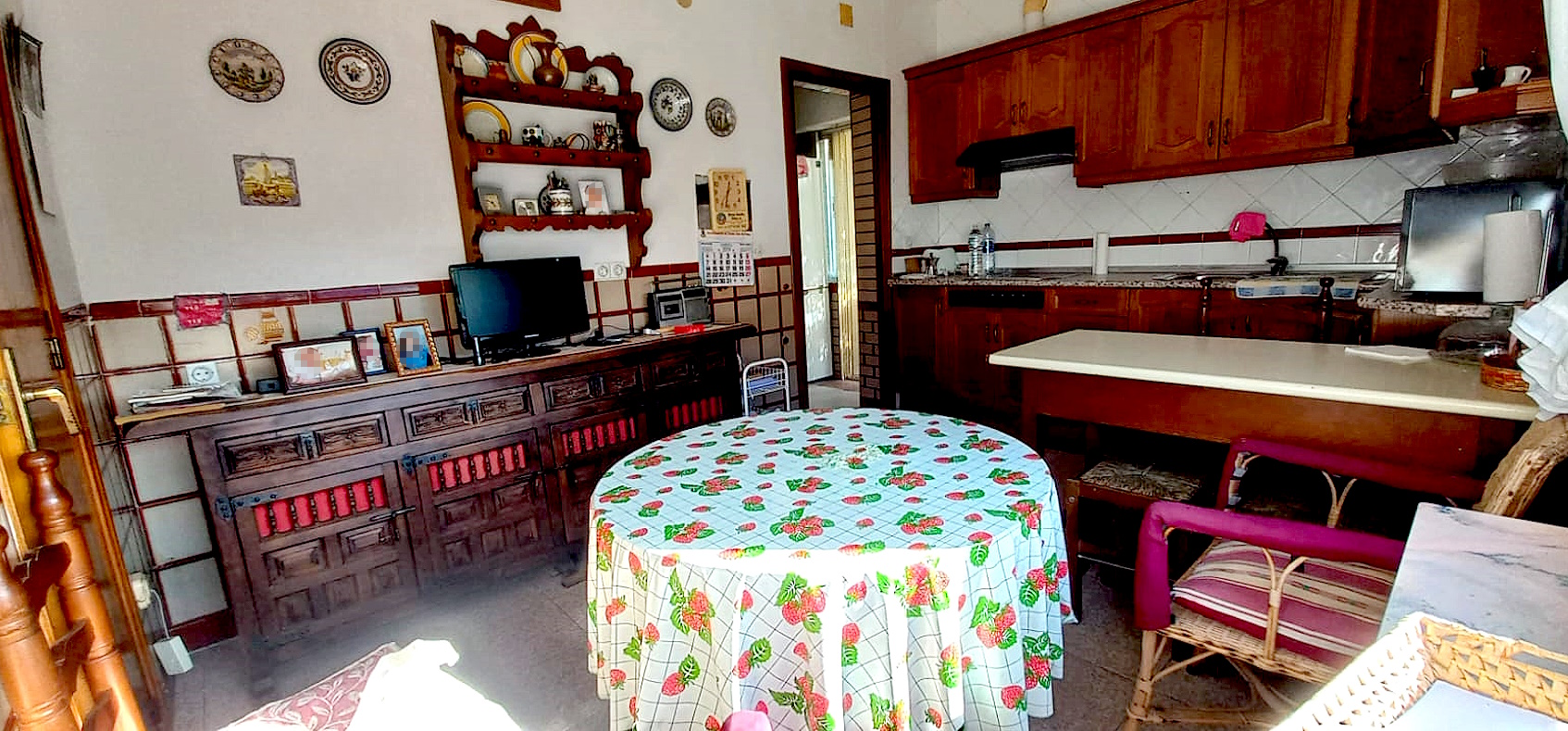 VIVIENDA: se compone de una amplia galería/solárium con mucha iluminación, un espacioso salón-comedor con chimenea de leña, cuatro habitaciones dobles, dos cocinas (una interior amueblada y equipada, más otra exterior de apoyo con chimenea), baño completo interior totalmente reformado con plato de ducha, trastero y cuarto de caldera,