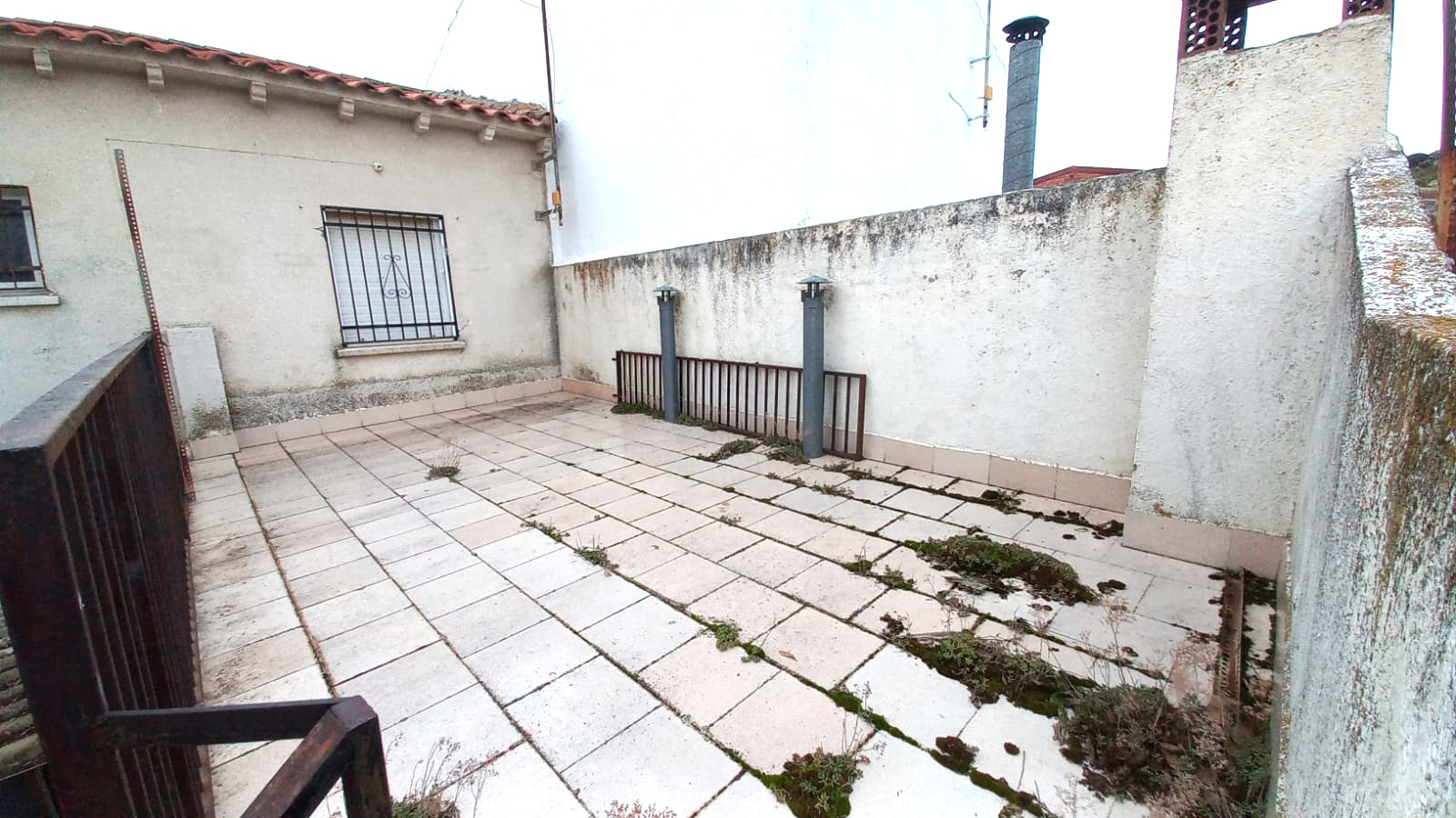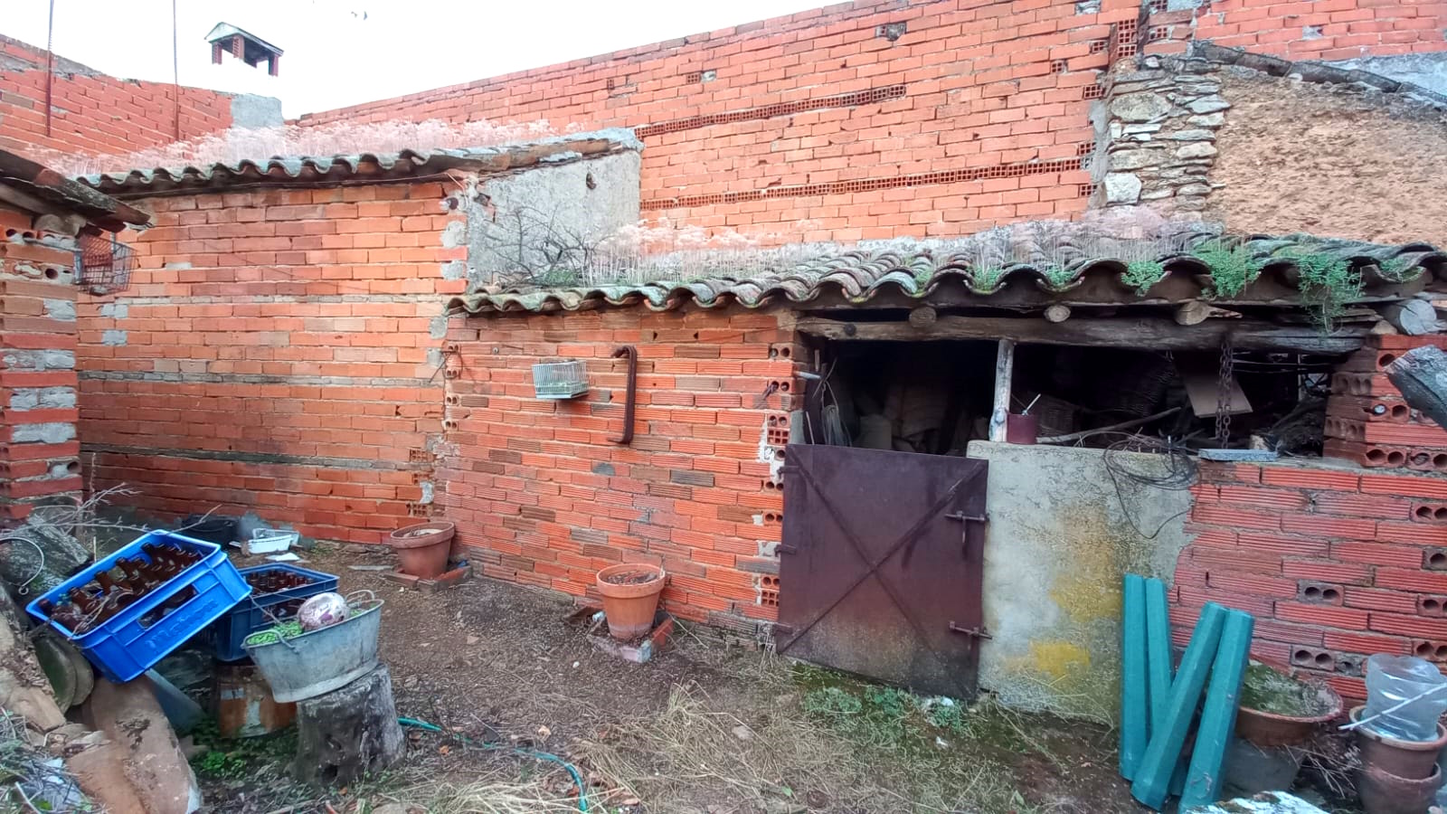 En el exterior encontramos el patio con una zona cubierta, amplia terraza en altura, más dos cobertizos o almacenes independientes.