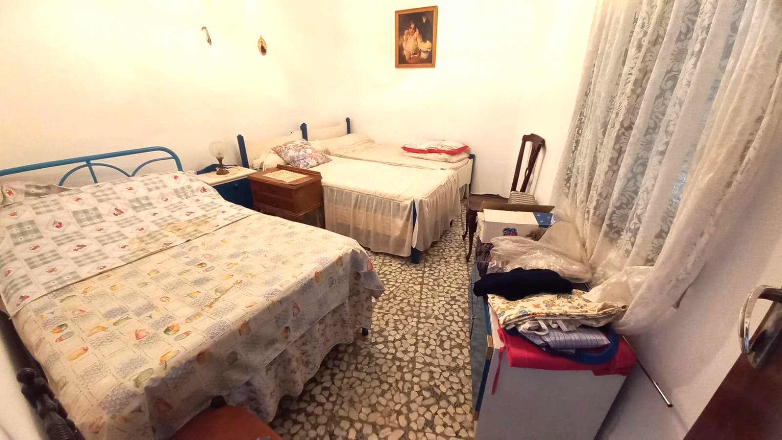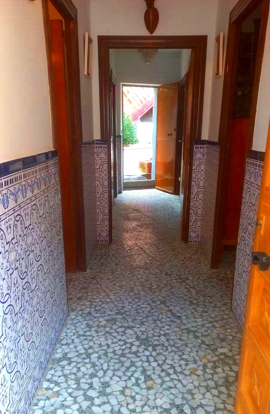 Se distribuye en pasillo de entrada que sirve a la vez de distribuidor y conectado con el patio, salón comedor con ventana a la calle, tres habitaciones muy amplias y suficientes para dos camas, espaciosa cocina exterior con chimenea, baño completo con bañera (exterior). En la parte trasera encontramos un típico patio de pueblo con higuera, desde el que podemos acceder a una terraza en altura con un pequeño almacén.