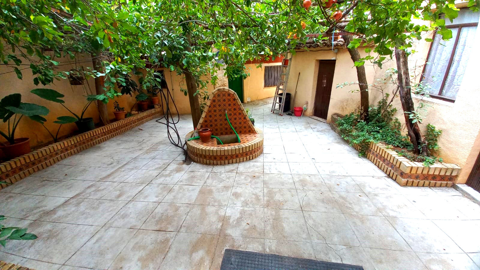 PLANTA BAJA: Un amplio hall/recibidor, salón-comedor, cocina amueblada y equipada de 15 m2, espacioso dormitorio doble, distribuidor con escalera antigua de forja y mármol, baño completo exterior con bañera, otra cocina matancera exterior con chimenea, despensa de 8 m2, y trastero. Patio con fuente ornamental y jardineras, más una espaciosa terraza en altura.