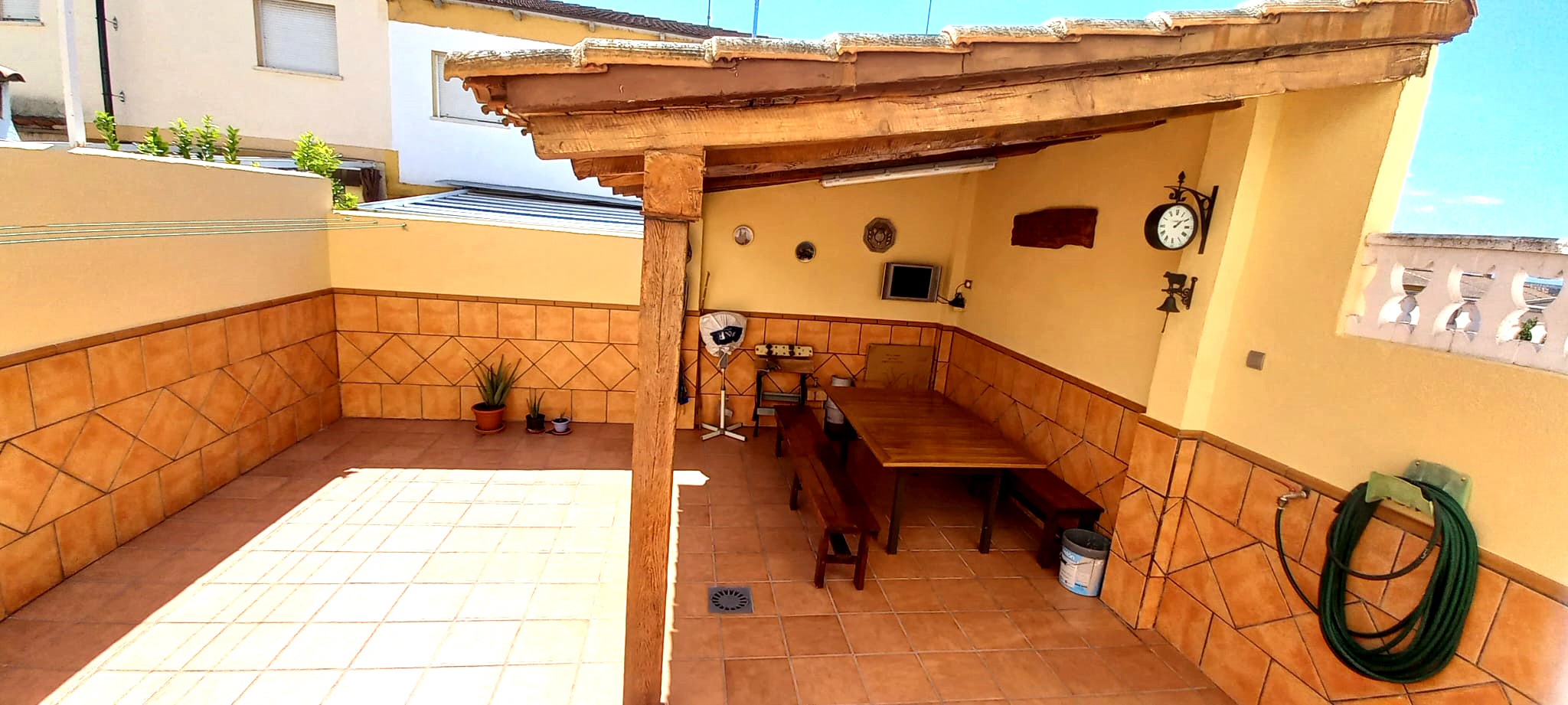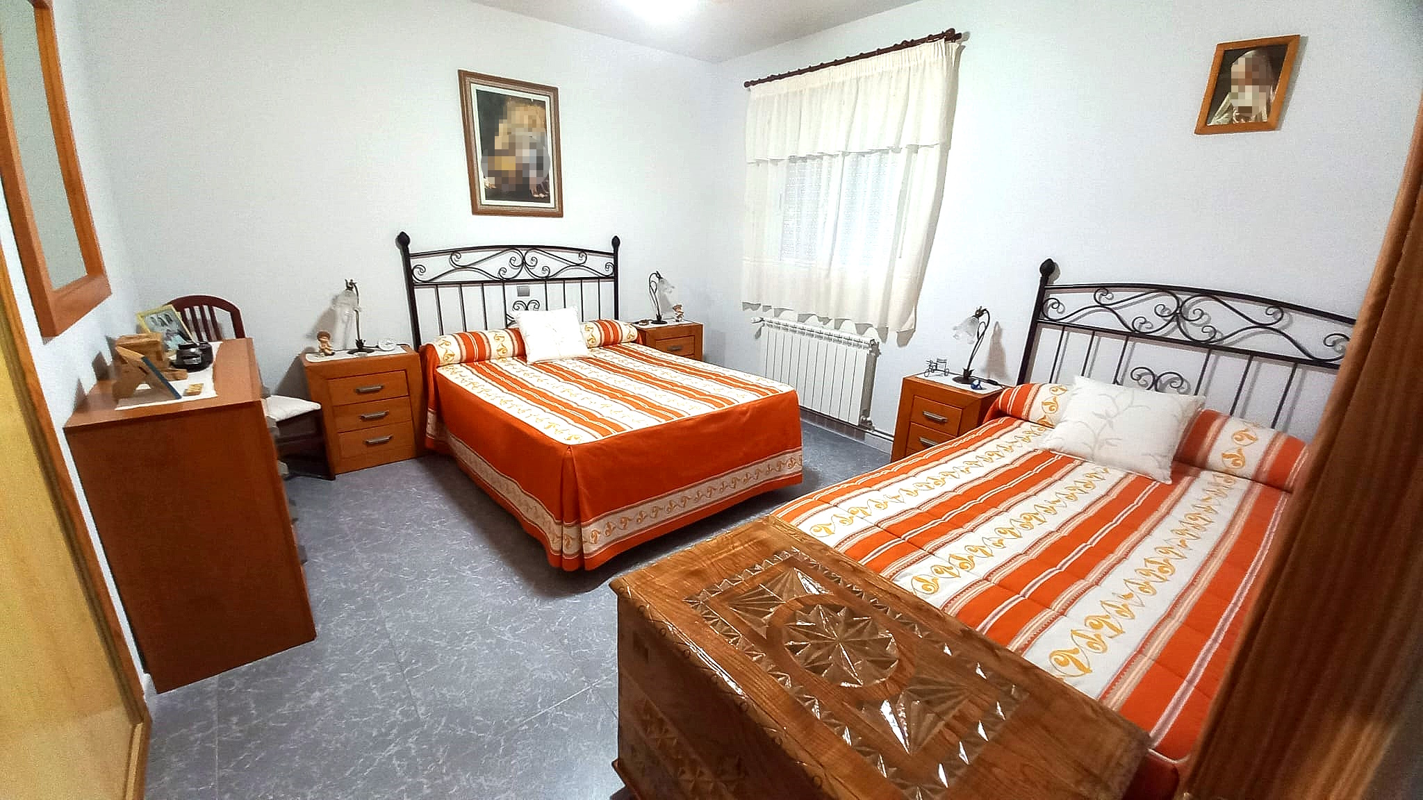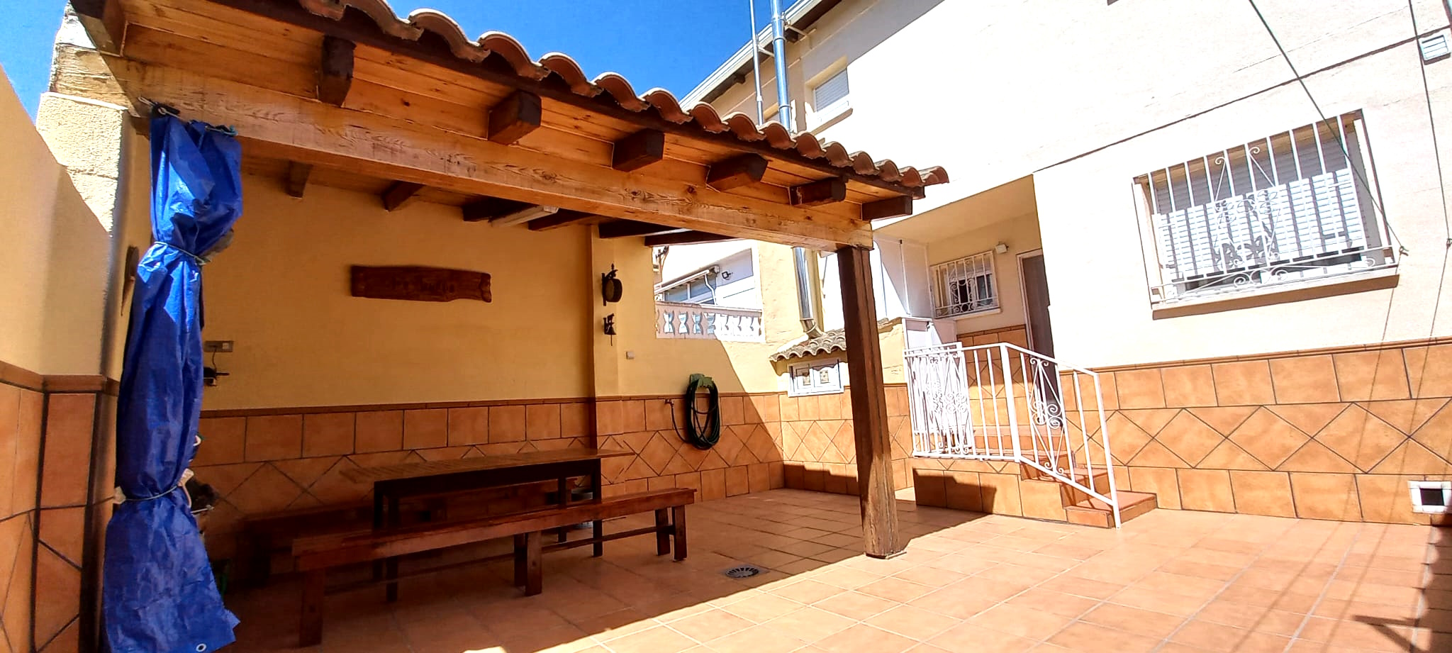 El patio está solado en gres, con un sólido cenador de madera maciza, y un armario auxiliar de aluminio para útiles o enseres. Además, cuenta con caldera y depósito de gasoil para calefacción por radiadores de agua, marca Ferroli, en muy buen estado. Se quedaría lista para entrar a vivir al momento, e incluye todo el mobiliario (excepto un par de enseres personales). Orientación de fachada al norte/patio al sur.