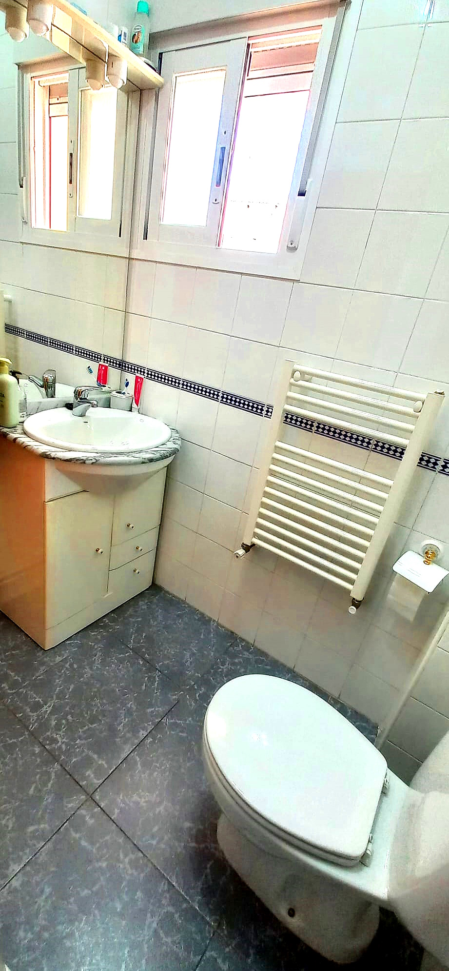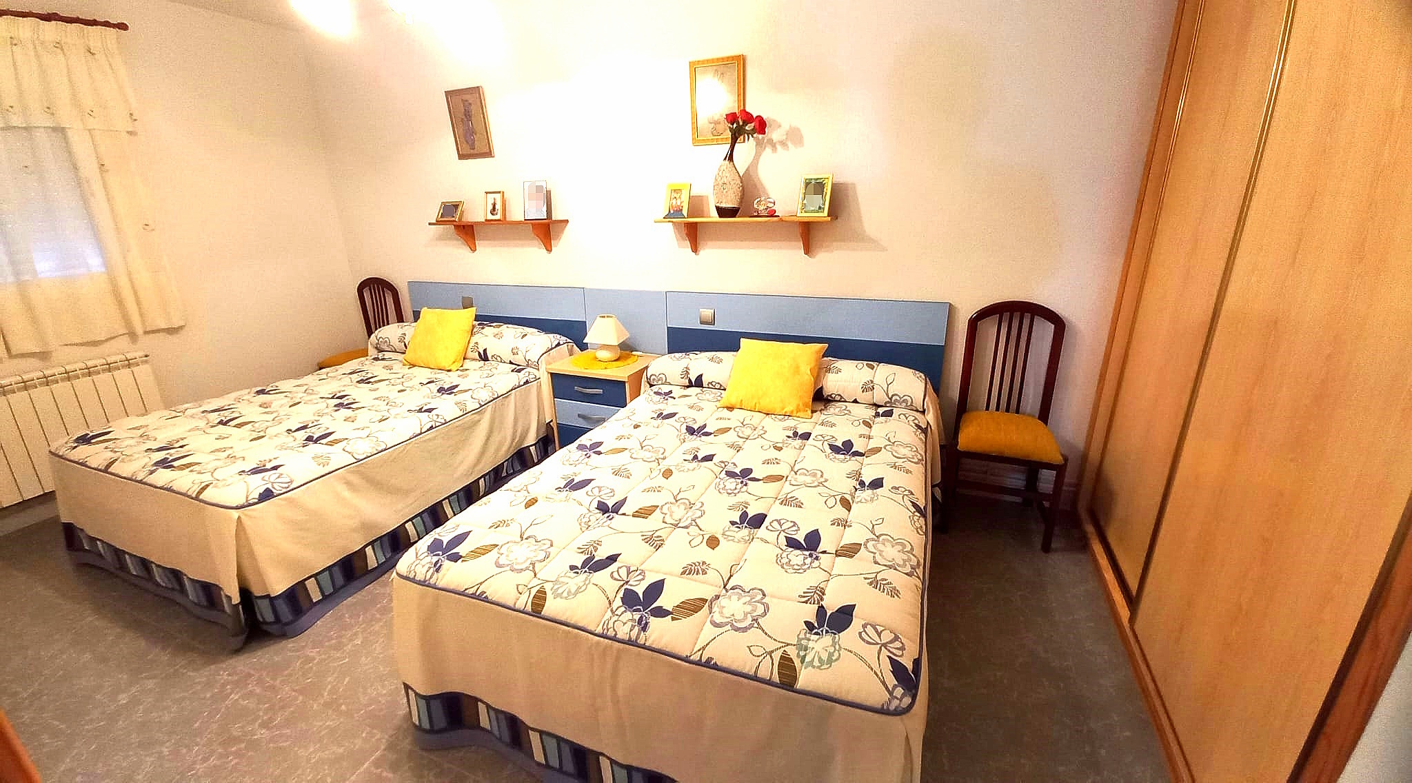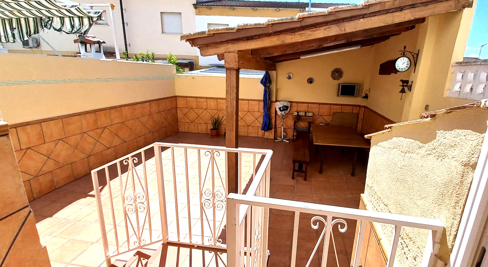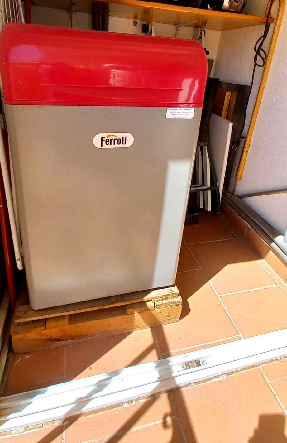 El patio está solado en gres, con un sólido cenador de madera maciza, y un armario auxiliar de aluminio para útiles o enseres. Además, cuenta con caldera y depósito de gasoil para calefacción por radiadores de agua, marca Ferroli, en muy buen estado. Se quedaría lista para entrar a vivir al momento, e incluye todo el mobiliario (excepto un par de enseres personales). Orientación de fachada al norte/patio al sur.