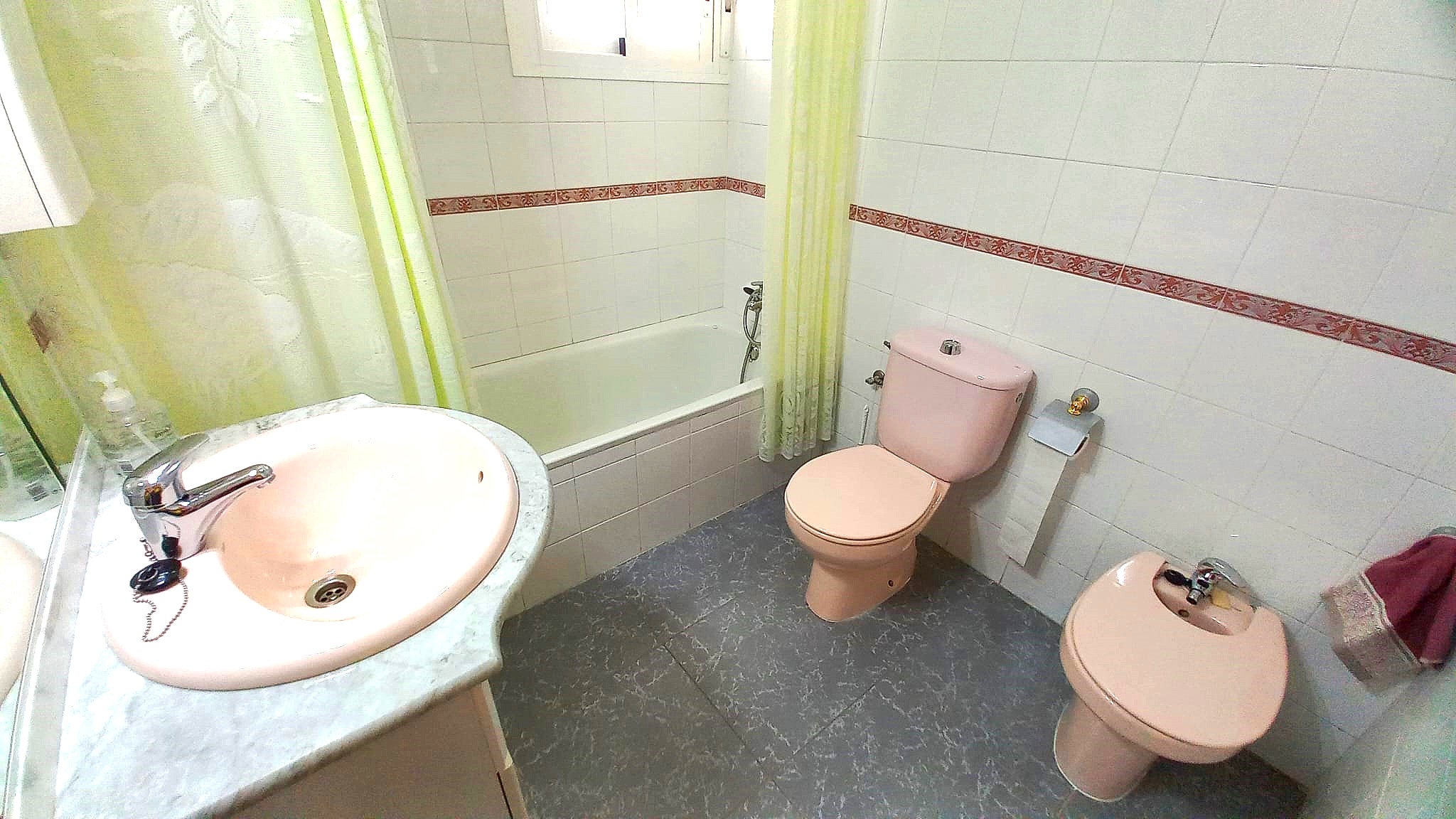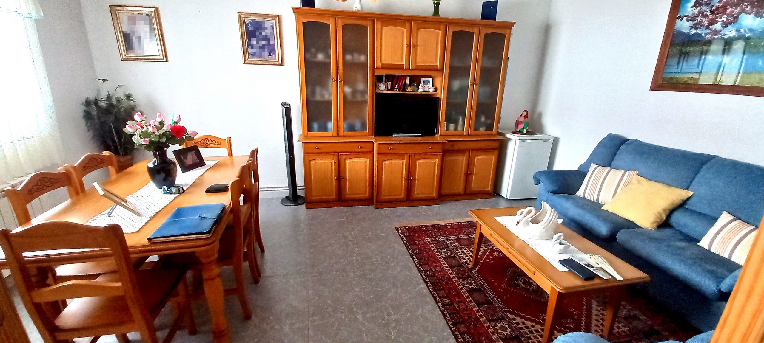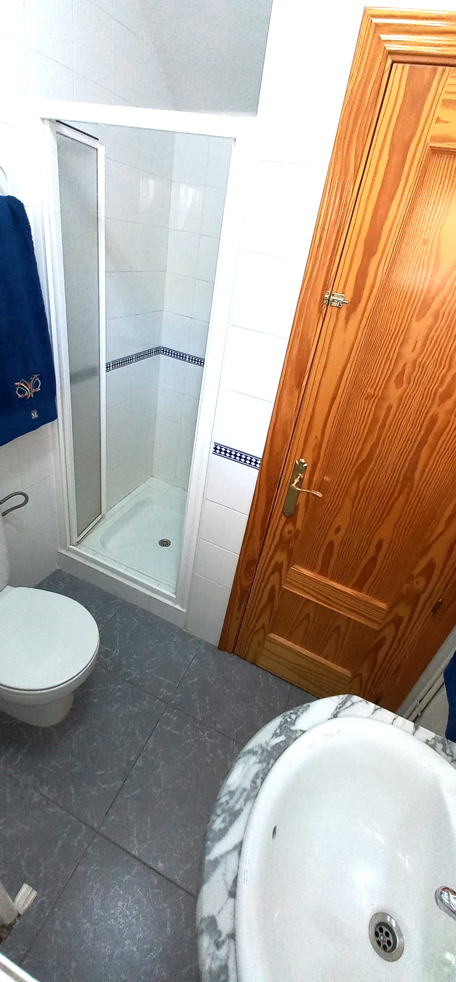 Se distribuye en pasillo de entrada, salón comedor con buena luminosidad, trastero bajo escalera, cocina completamente amueblada y equipada, dos baños completos (uno en planta baja con plato de ducha y otro en primera planta con bañera), y tres habitaciones dobles con armarios empotrados (habitación de matrimonio con balcón a la calle).
